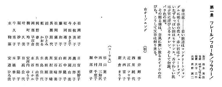 | 1 | 「フレ−ル!フロール!フラワ−!」 | 「オ−プニング」 | 藤井輝子・西川純代・近江ツヤ子・大西富子・新倉まり子 | 杉山葉子・西川三知代・中村千恵子・堀部信子 |