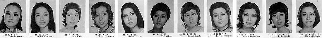 中麗子・長野恵子・関口愛子・長瀬照代・田島美和子・川村美晴・大浦(浦)ひとみ・石川裕子・粕谷幸子・滝川春代・奥田順子・藍かおる |